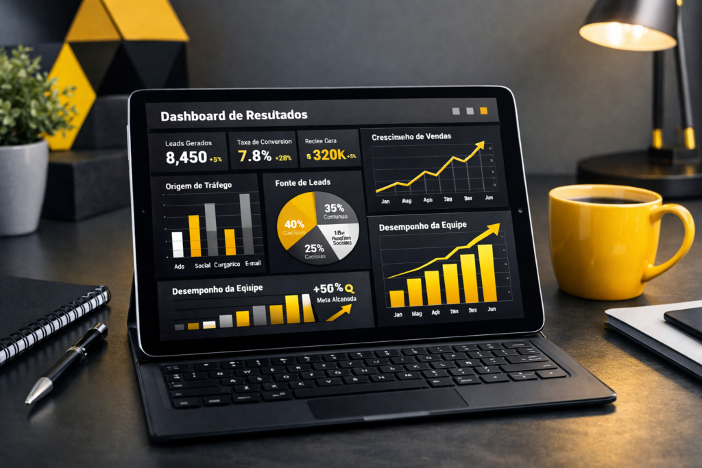 Ao conectar plataformas como Google e Power BI, unificamos métricas, analisamos performance em tempo real e entregamos clareza para decisões mais rápidas e eficientes.